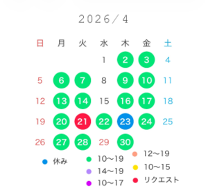 ご予約空いております