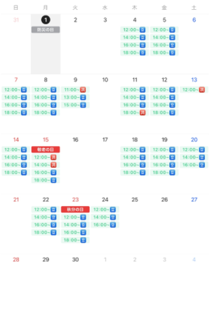 ・ 記載されている時間が最後にお受けできるお時間です。