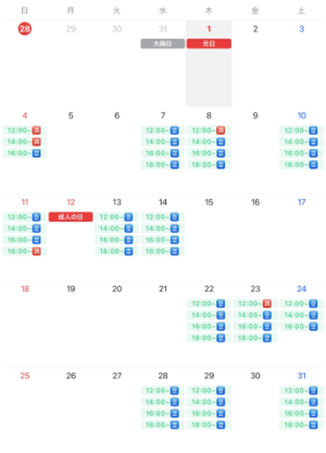来月の出勤予定は以下のようになっています