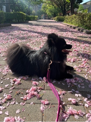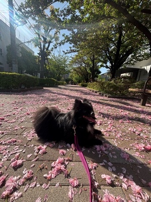 ふわっと広がる桜絨毯の上で、ラブちゃん撮影会スタート