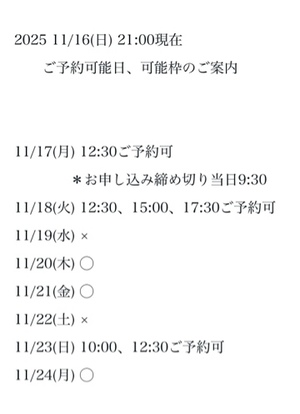 完全ご予約にて