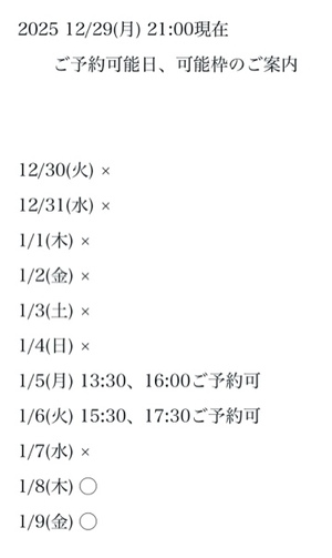 完全ご予約にて