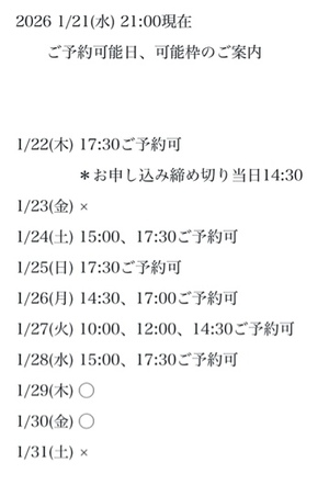 完全ご予約にて
