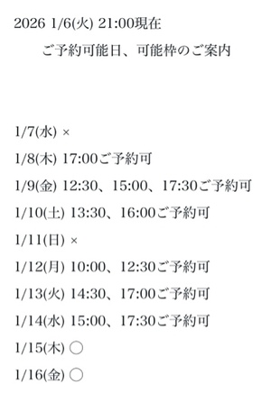 完全ご予約にて