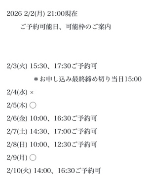3枠6時間以上です♪(要ご相談)