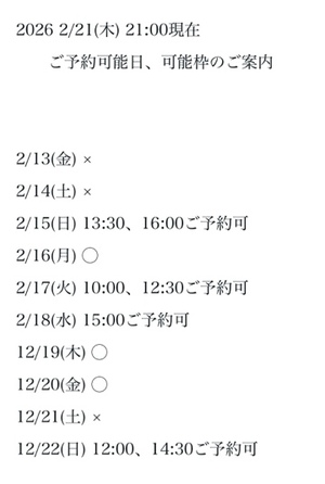 完全ご予約にて