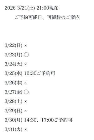 完全ご予約にて