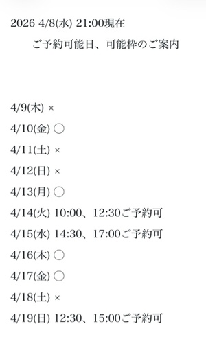 3枠6時間以上です♪(要ご相談)