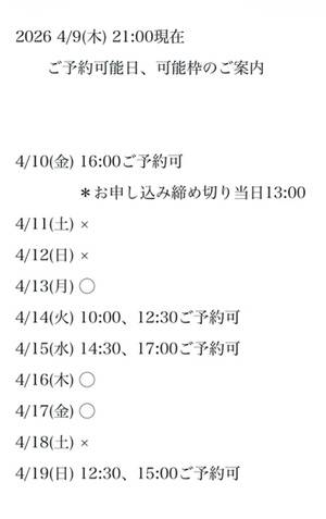 完全ご予約にて