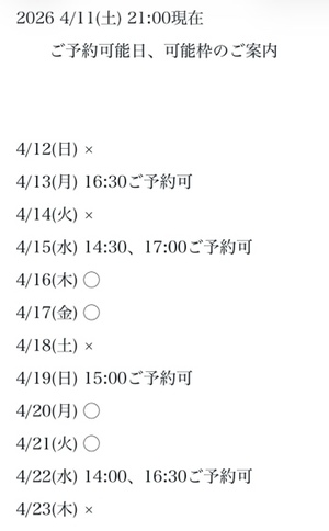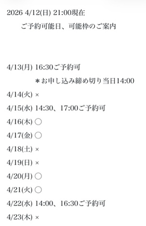 完全ご予約にて