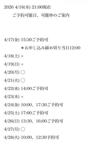 3枠6時間以上です♪(要ご相談)