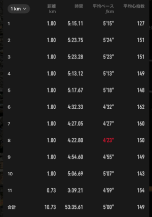 苦しいペースで3km