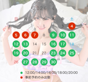 赤文字の日は事前予約出勤のみです。