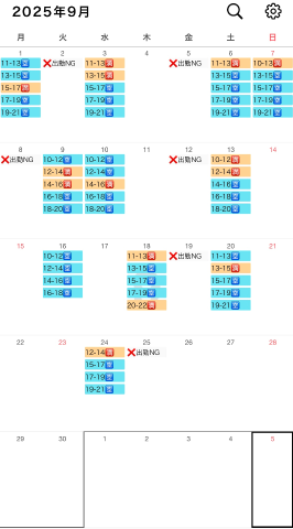9月の出勤日リクエスト