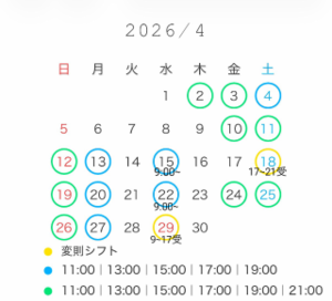 4/4、13、20、27の9:00枠は姫予約限定でご予約可能になります◎