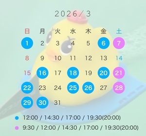 カレンダー内下記の通りです⏰