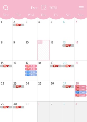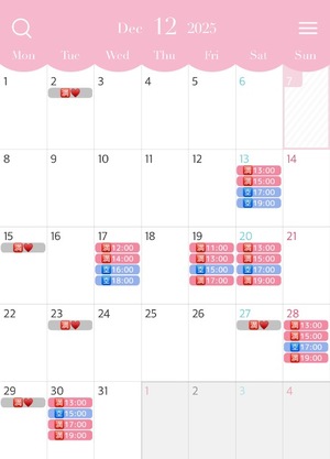 12月は無理せず、1日最大4枠でシフトを出しているのですが、体調を見て5枠に増やす日もあるかもです...!
