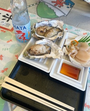 先ほどお母さんと道の駅で牡蠣とホタテ食べたよ🩵