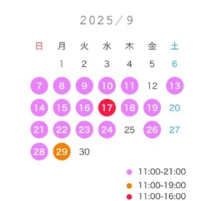 9月の日程こちらです🪄