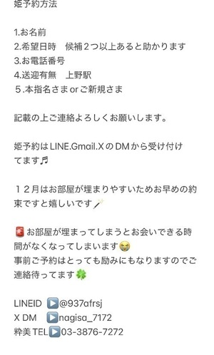 姫予約は先の予定までご予約可能🉑ですので、スケジュール出てる日はご予約🉑なのでご連絡待ってますね🎀