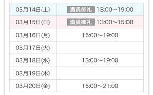 3/15 事前予約にて🈵枠