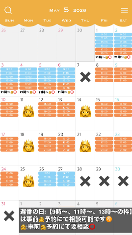 ????の箇所も時間帯によっては??【平日:9時〜、11時〜 2枠】