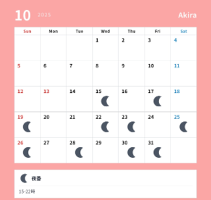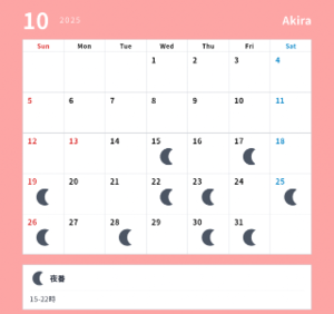 10月後半のシフトも更新しましたので