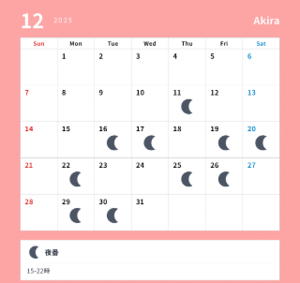 次の出勤は月曜日と火曜日です?
