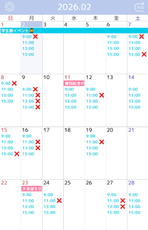 以下、2月のご予約状況になります。