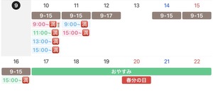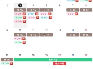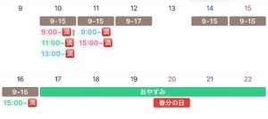 今のところ9:00~/13:00~/15:00~ご予約可能です〇