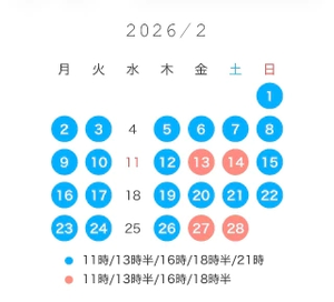 次回ご予約は2/2(月)11時以降です
