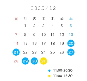12月後半の予定です