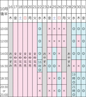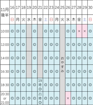 明日空き¦10:00/12:00/14:00/16:00/20:30