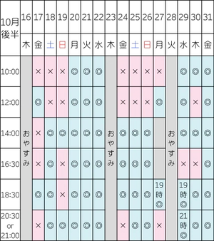 近日空き¦14日16:30/18:30