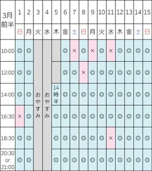 次回の空き枠はこちらです