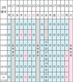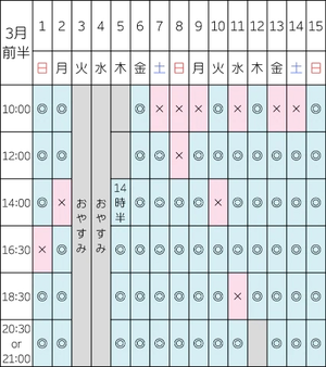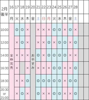 次回の空き枠はこちらです