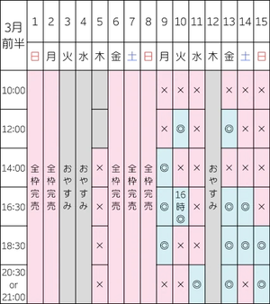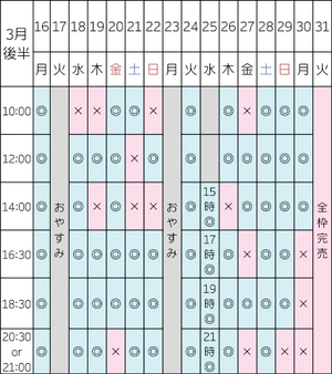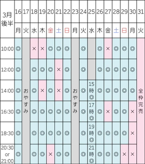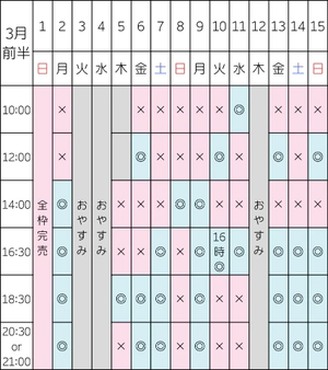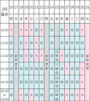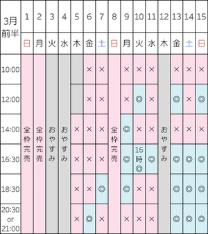 【3/2 14:00/16:30/18:30/20:30】