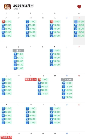 2026年2月の出勤だよ♡♡