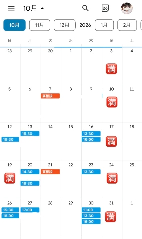 次回空き枠10月12日 14:30〜/19:30〜/
