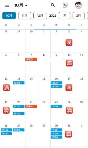 次回空き枠10月13日 15:30〜/