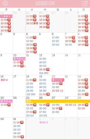 3月の空き枠は以下の青文字です