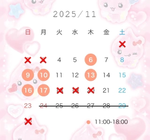 ❌の日以外は姫予約のリクエスト出勤が可能です