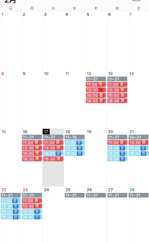 17日 11時/13時半/16時
