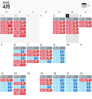 ・ご希望日の日時(11時/13時半/16時/18時半)