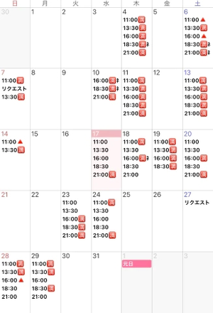 リクエストの部分は普通の出勤日に記載している時間の中で希望を送ってくださいね✉️