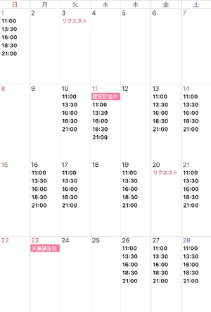 2月の予定は明日公開です