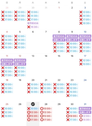 7日(土)10:00~/12:30~/15:00~/17:30~LINE、メールからの