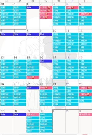 明日16:30、19:00〜