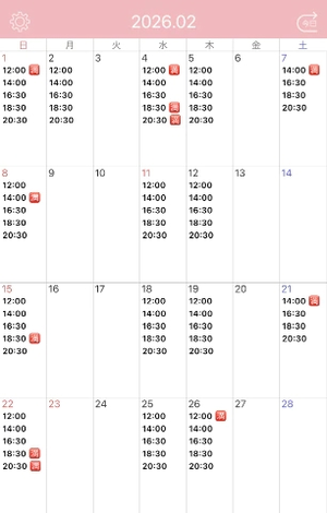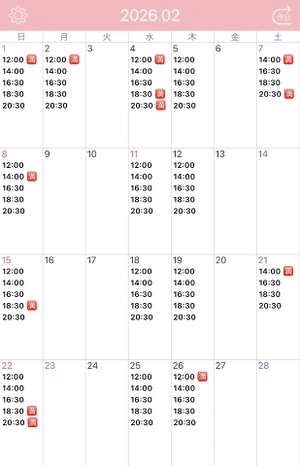 2月1日 14時/16時半/18時半/20時半