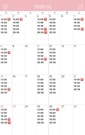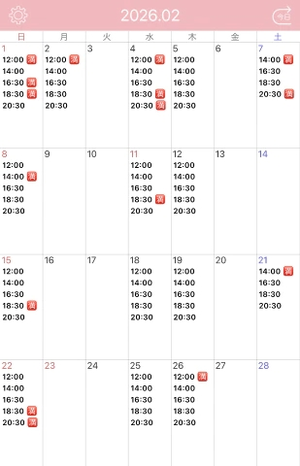 2月1日 14時/16時半/18時半/20時半